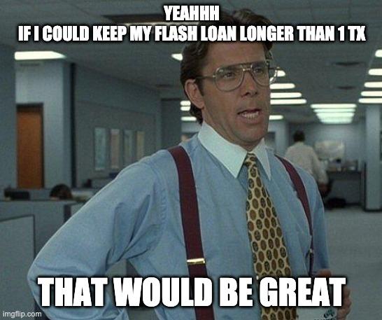 Aave Flash Loan meme – "Yeahhh, if I could keep my flash loan longer than 1 transaction, that would be great"